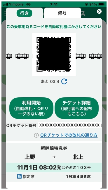 えきねっとアプリでのQチケットのQRコード表示は簡単。