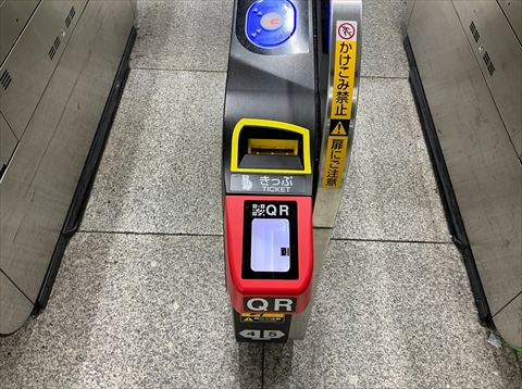駅の入場ですが改札の赤い突起にQRコードをかざせば入場できます。